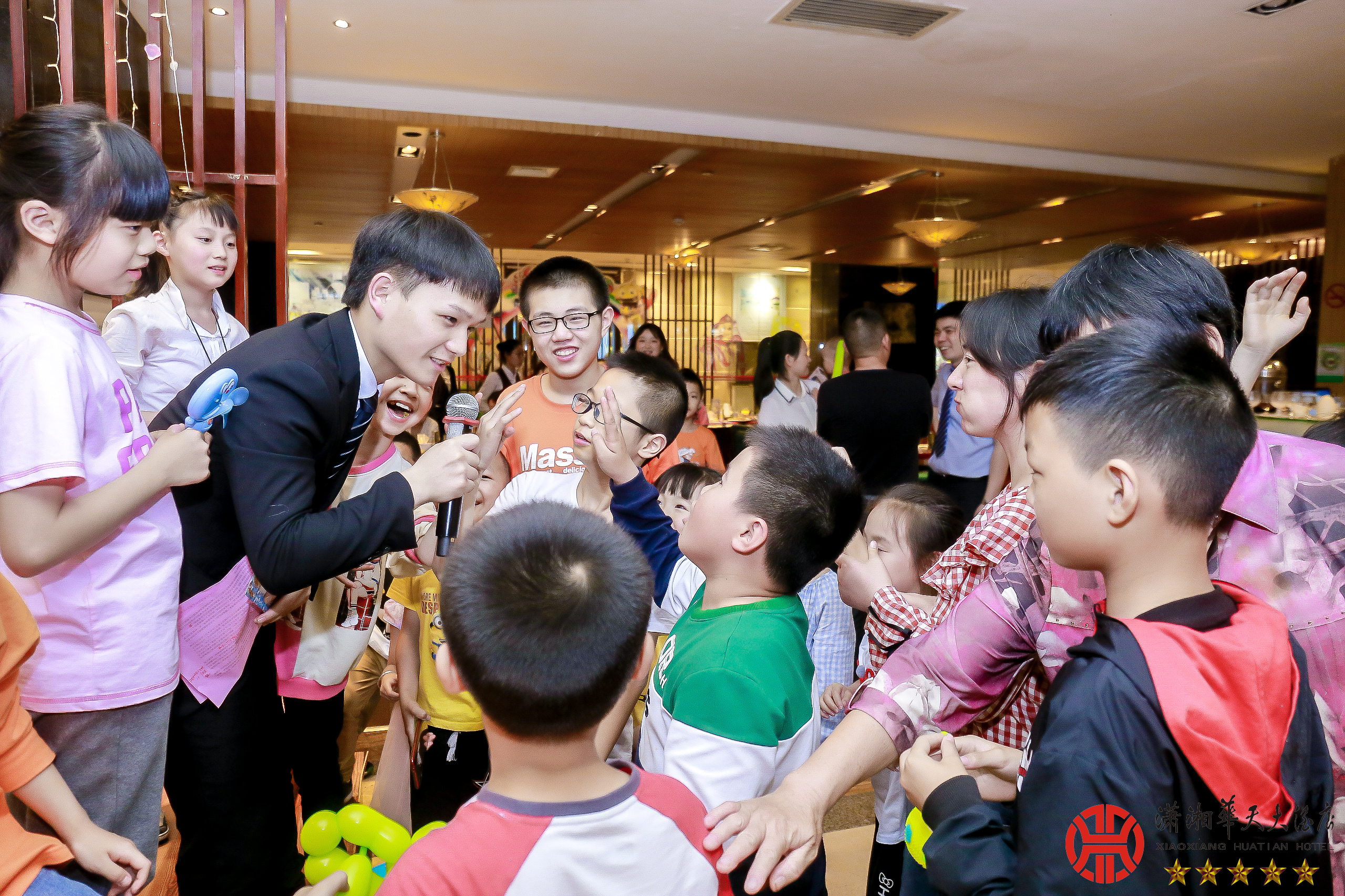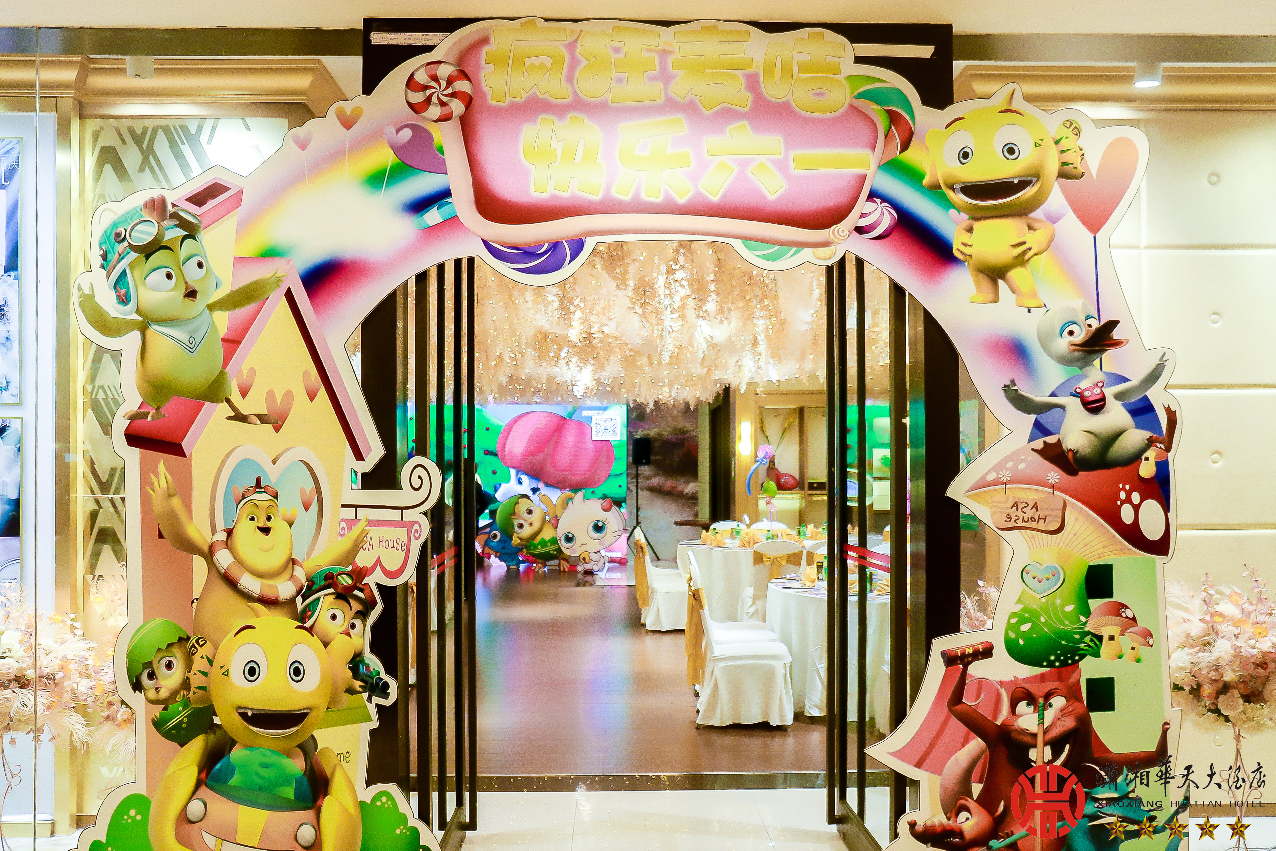 "疯狂麦咭 快乐六一"潇湘华天大酒店六一主题活动! 六月一二日晚餐设一楼(紫云宫,华斯度餐厅) 时间:17:30--20:00 现场采用[快影.照片直播]解决方案。照片直播让活动现场无需等待,现场观众3分钟即可拿到精修过的照片,照片分享传播出去,使活动影响力和品牌知名度扩大许多倍!